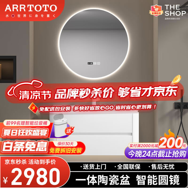 ARRTOTO新款简约浴室柜卫生间洗手盆洗脸盆柜组合陶瓷一体盆洗漱台盆柜 S5白色70CM-智能圆镜 默认发白色/需奶油风下单备注
